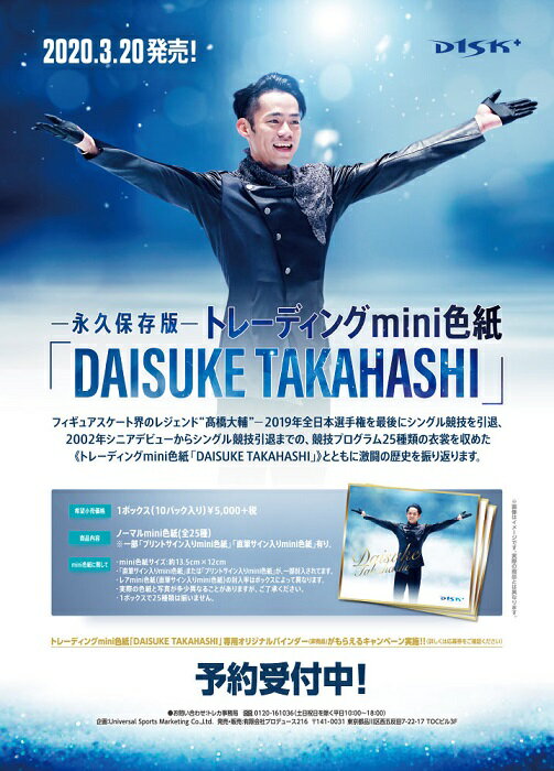 ■フィギュアスケート界のレジェンド"高橋大輔"−2019年全日本選手権を最後にシングル競技を引退、2002年シニアデビューからシングル競技引退までの、競技プログラム25種類の衣装を収めた《トレーディングmini色紙「DAISUKE TAKAHASHI」》とともに激闘の歴史を振り返ります。