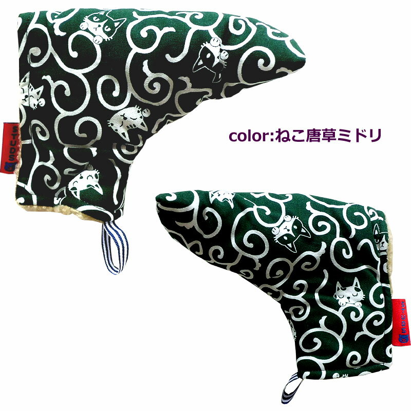 NEWモデル ゴルフヘッドカバー パター用 ねこ唐草 ミドリ