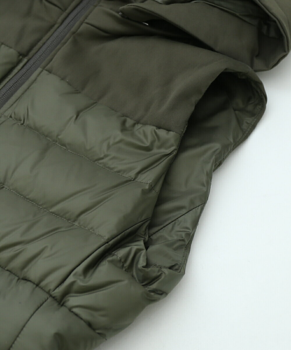 また高級なグースダウンを使用することにより、充填量は最小限ながら保温性を高く保ち、 なおかつスッキリとしたデザインを実現しています。