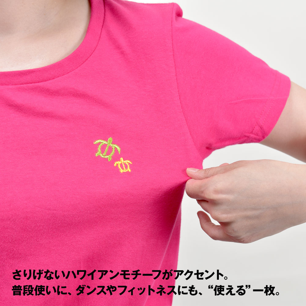 フラダンス衣装 Tシャツ フラダンスtシャツ ダンス衣装 トップス ハワイ衣装 ホヌ 亀【オリジナル刺繍対象品】 JP4400 レディース 綿100% 伸縮素材 半袖/丸首 ホワイト/イエロー/オレンジ/ピンク/レッド/ターコイズ/ブルー/ネイビー/ブラック M-L 【楽ギフ_包装】