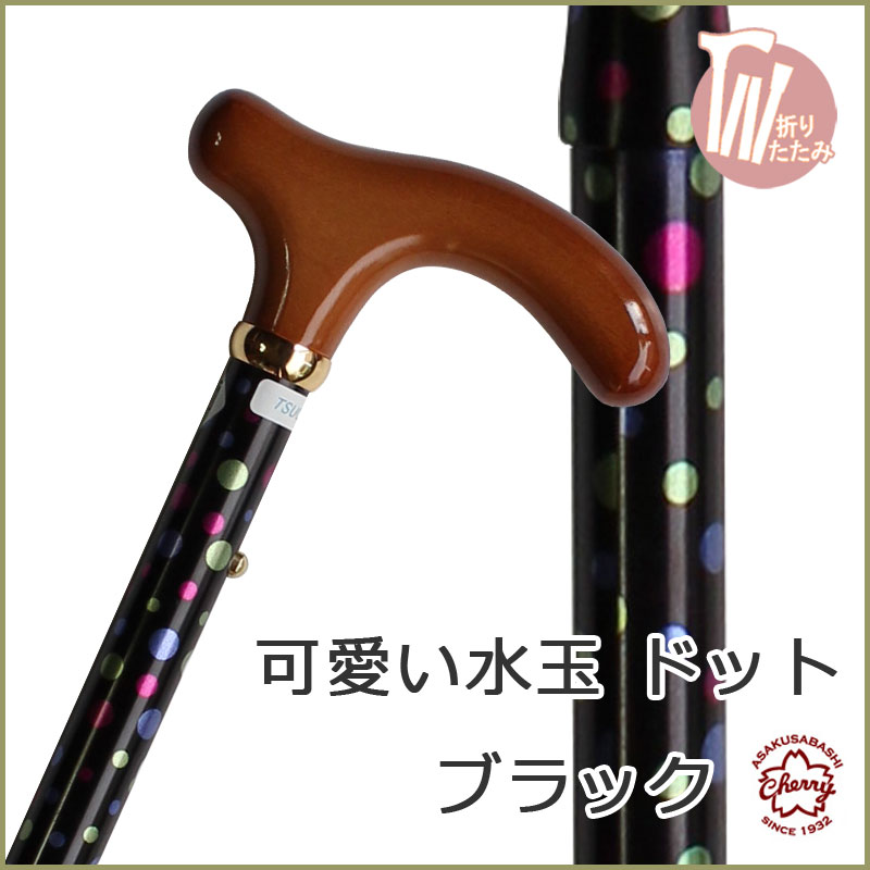●折りたたんで旅行カバンヘ収納! 持ち運びに便利な【折りたたみタイプ】です! 商品名水玉 アルミ ステッキ ブラック色・柄 ブラック 水玉 ドット柄 杖の種類杖 折りたたみ杖 (持ち運びに便利)調節機能4段階調節折りたたんだ時の大きさ(cm) 25 グリップ(杖の手元)の素材 カエデ シャフト(杖の棒部分)の素材アルミステッキの長さ(cm) 76.5〜84 適応身長(cm)【お使いになる方の身長】 147〜162 ※身長が147センチ未満の方は、身長をご連絡下さい!カット後お届けします! ステッキの重さ(g) 260 シャフト上部径サイズ(mm)【ストラップを付ける部分】19〜22先ゴム径サイズ(mm) 16※先ゴムサイズは、先ゴム交換時に必要です。