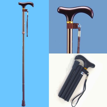 折りたたみ杖調節式アルミ軽量/つえ/伸縮ステッキ/福祉用具 携帯に便利なアルミ製軽量折りたたみ杖 身長にあわせて、高さ調節は5段階で可能です ストラップ付 色は高級感のあるブラックとブラウン、天然木の持ち手で男性にも女性にもお使いいただけます